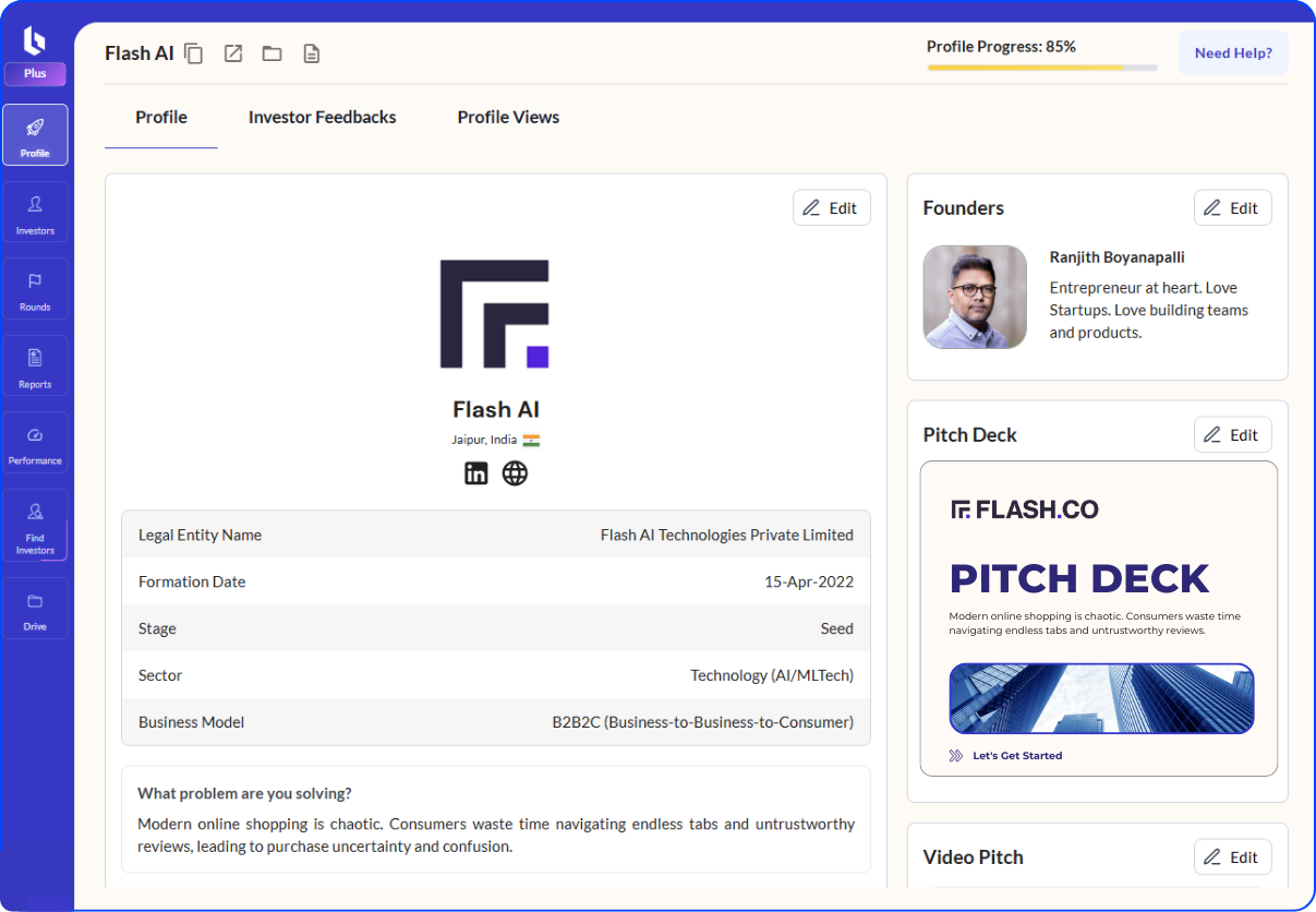Designed to empower startups, Backrr bridges the gap between founders and investors with cutting-edge tools from pitch to exit with actionable insights.