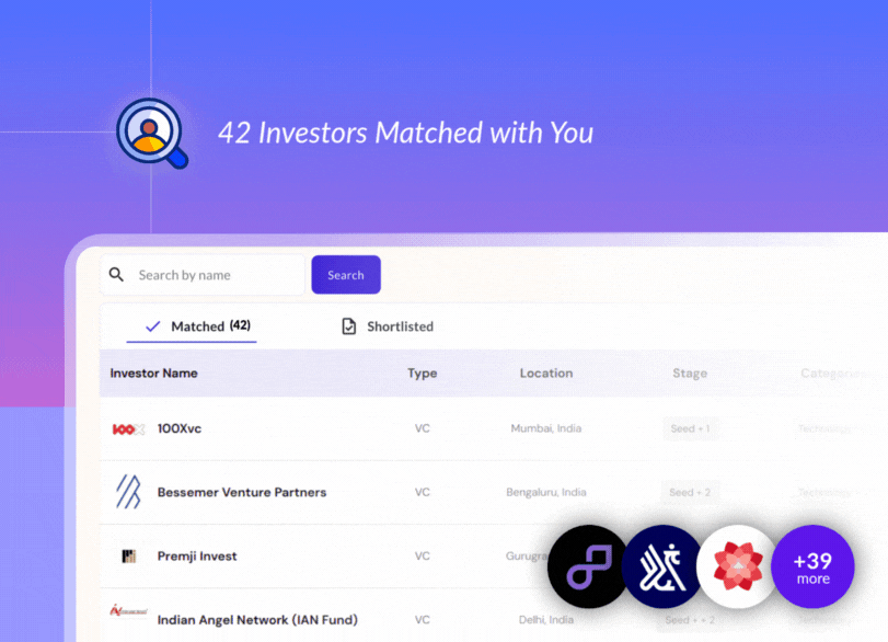 Discover the perfect investors from a global database of 10k+ angels, VCs, and family offices tailored to your startup's goals.